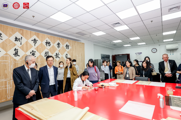 与会人员实地参观了档案修复室、档案缩微室、档案查询利用大厅、档案展览等,了解了市档案馆在档案保护、档案利用、档案展览方面的具体做法,并与深圳市档案馆工作人员进行了现场交流。(文/周莹蓉、苗汐璘,图/深圳市外事保障中心)