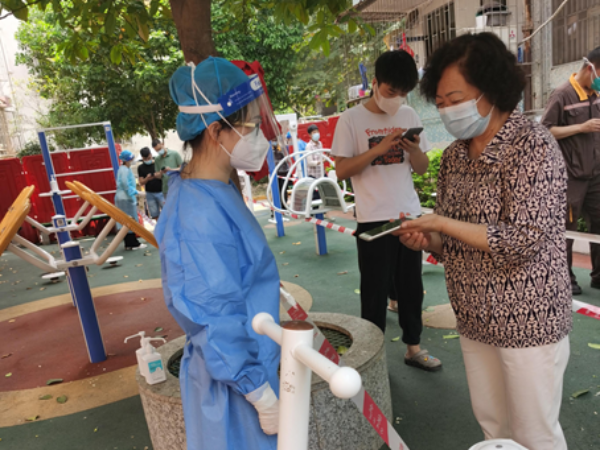 陈晓同志也连续3日参加社区的核酸检测志愿服务,而她的丈夫也在大鹏新区抗击疫情,已多日未归家。参加社区的防疫志愿服务工作,让陈晓感觉他们夫妻俩在一起并肩作战。“只有大家共同携手,织密防控网,才能让疫情早日散去,让无数的小家早日团圆。”